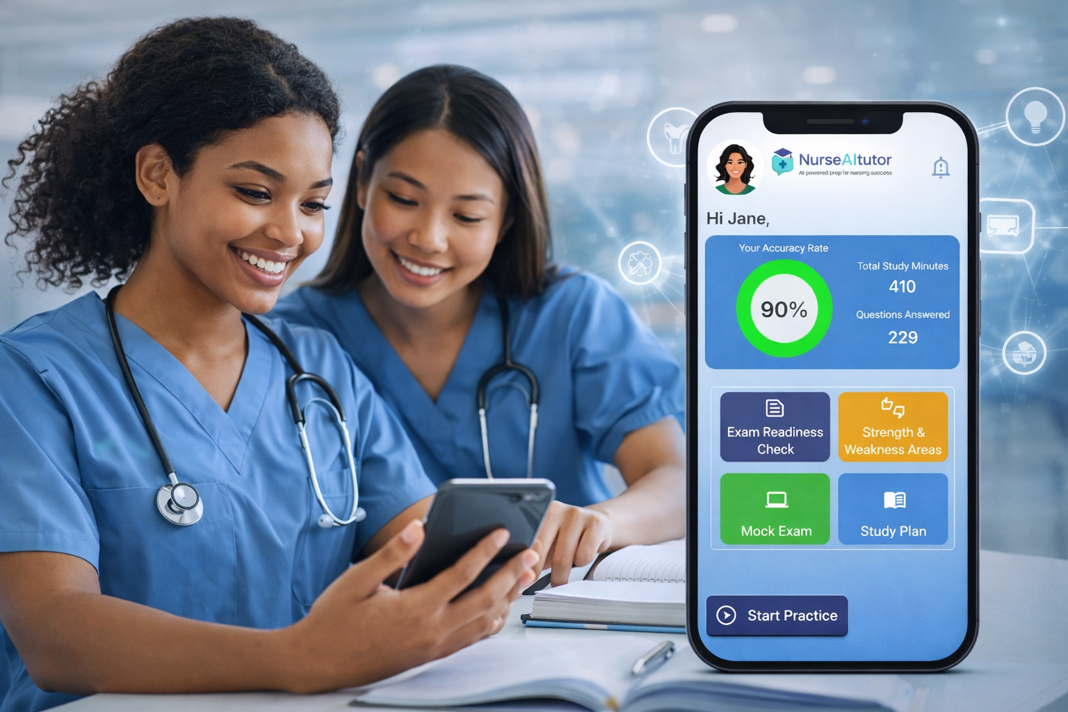 Study anywhere, at your own pace, while NurseAITutor monitors your performance and provides analytics that help you focus on what matters most.
